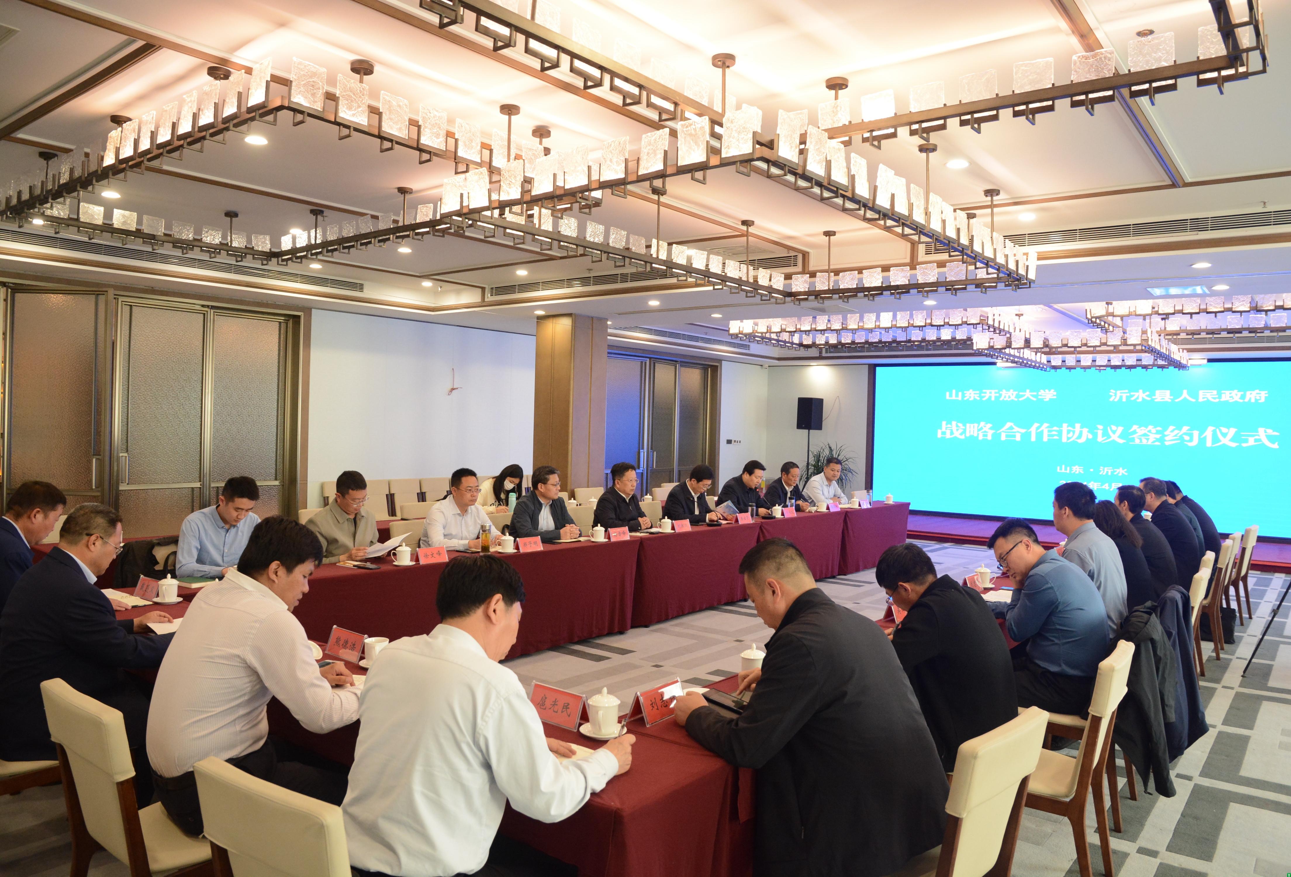 仪式上,徐文谋、陈士贤共同为山东开放大学乡村振兴学院沂水分院揭牌;听取了山东开放大学、沂水县人民政府战略合作协议筹备及下步合作情况汇报;签署了战略合作协议。