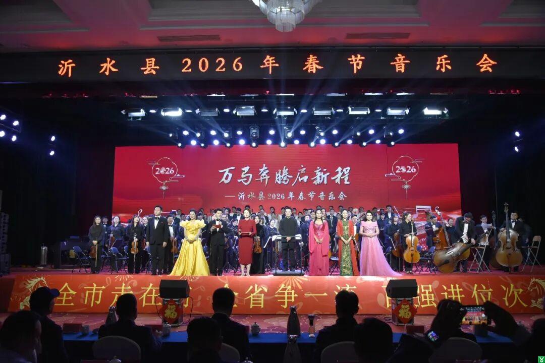 灵蛇辞岁千家福,骏马迎春万象新。2月12日晚7时30分,“万马奔腾启新程”沂水县2026年春节音乐会炫彩开演。县领导刘铭、葛龙江、徐本开、郭忠友、于民、李晓冬、何长平、吕洋等,与社会各界群众代表欢聚一堂,共赏艺术盛宴,迎接丙午马年到来。