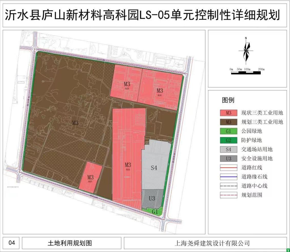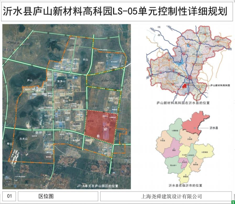《沂水县庐山新材料高科园(LS-05)单元控制性详细规划》(以下简称该《规划》),由上海尧舜建筑设计有限公司编制,规划编制人员经过现场调研、资料收集、广泛征求意见、多次论证,于2023年3月完成编制成果。目前该《规划》已通过专家论证。按照《中华人民共和国城乡规划法》、《城市、镇控制性详细规划编制审批办法》等有关法律法规,现对该《规划》成果进行公示,