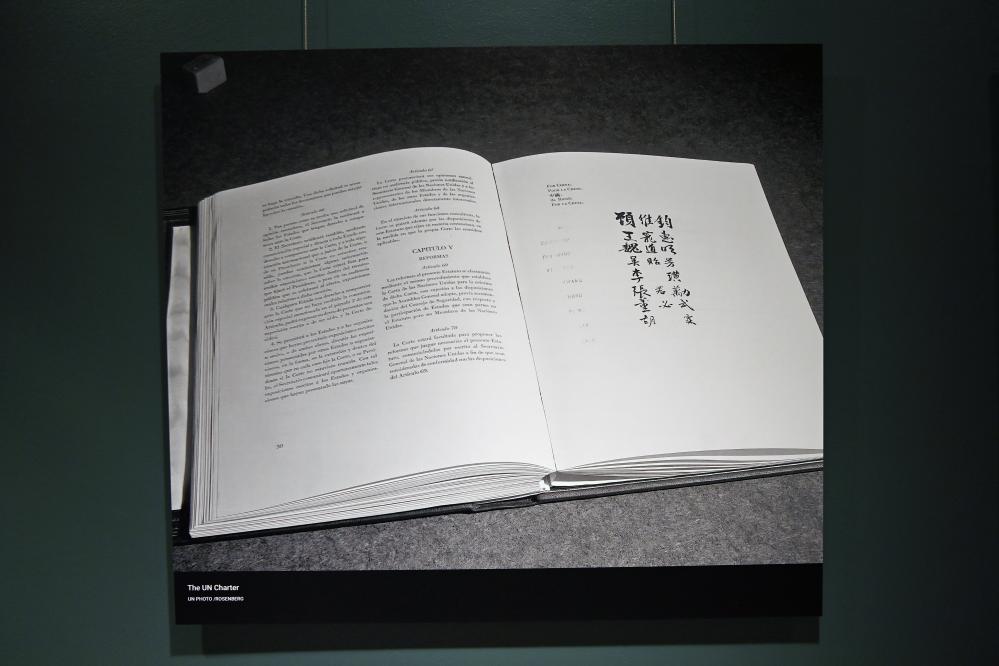 这是9月18日在位于纽约的联合国总部拍摄的“重振旧金山精神”展览的《联合国宪章》。 新华社记者 李睿 摄