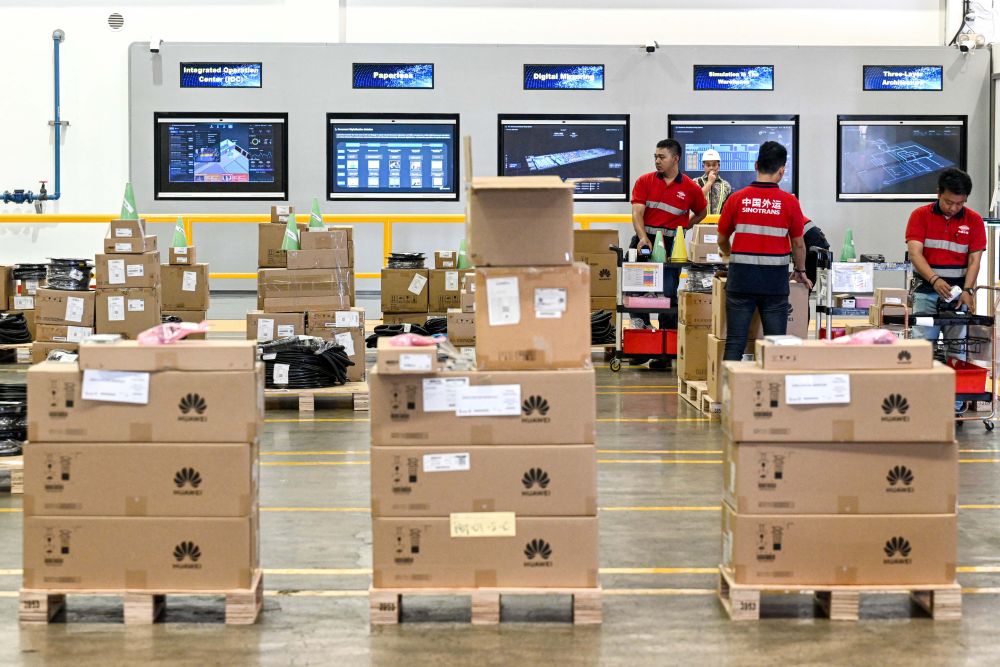 这是2024年3月7日在印度尼西亚西爪哇省勿加泗拍摄的5G智慧仓库。当日,印尼最大电信运营商印尼电信公司与华为印尼公司揭幕该国首个5G智慧仓库和5G创新中心。