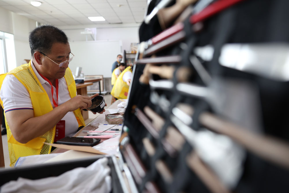 2023年8月3日,在敦煌研究院多场耦合实验室中,工作人员对庆阳北石窟寺砂岩样品进行三维扫描分析。2020年底,敦煌研究院建成我国文化遗产领域首个多场耦合实验室,实验室可模拟-30℃到60℃、10%至90%相对湿度以及风、雨、雪、太阳照射等各类气候条件,基础研究能力得到进一步提升。