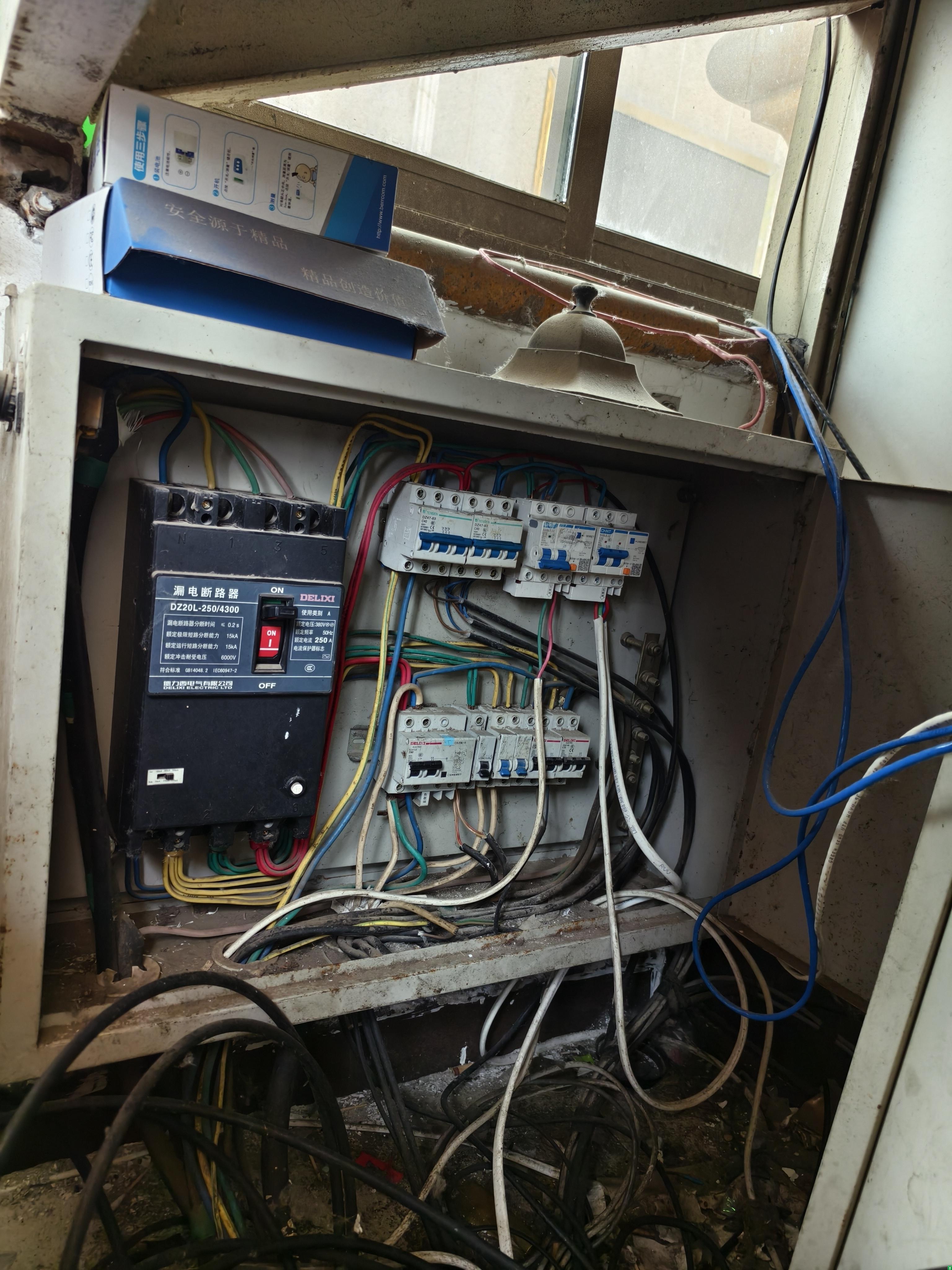 6.北门保安室内漏电断路器缺少隔弧片,配电箱外壳未做接地;