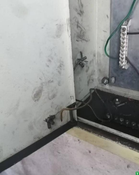 6.机加工车间东侧配电箱门PE跨接线断裂;
