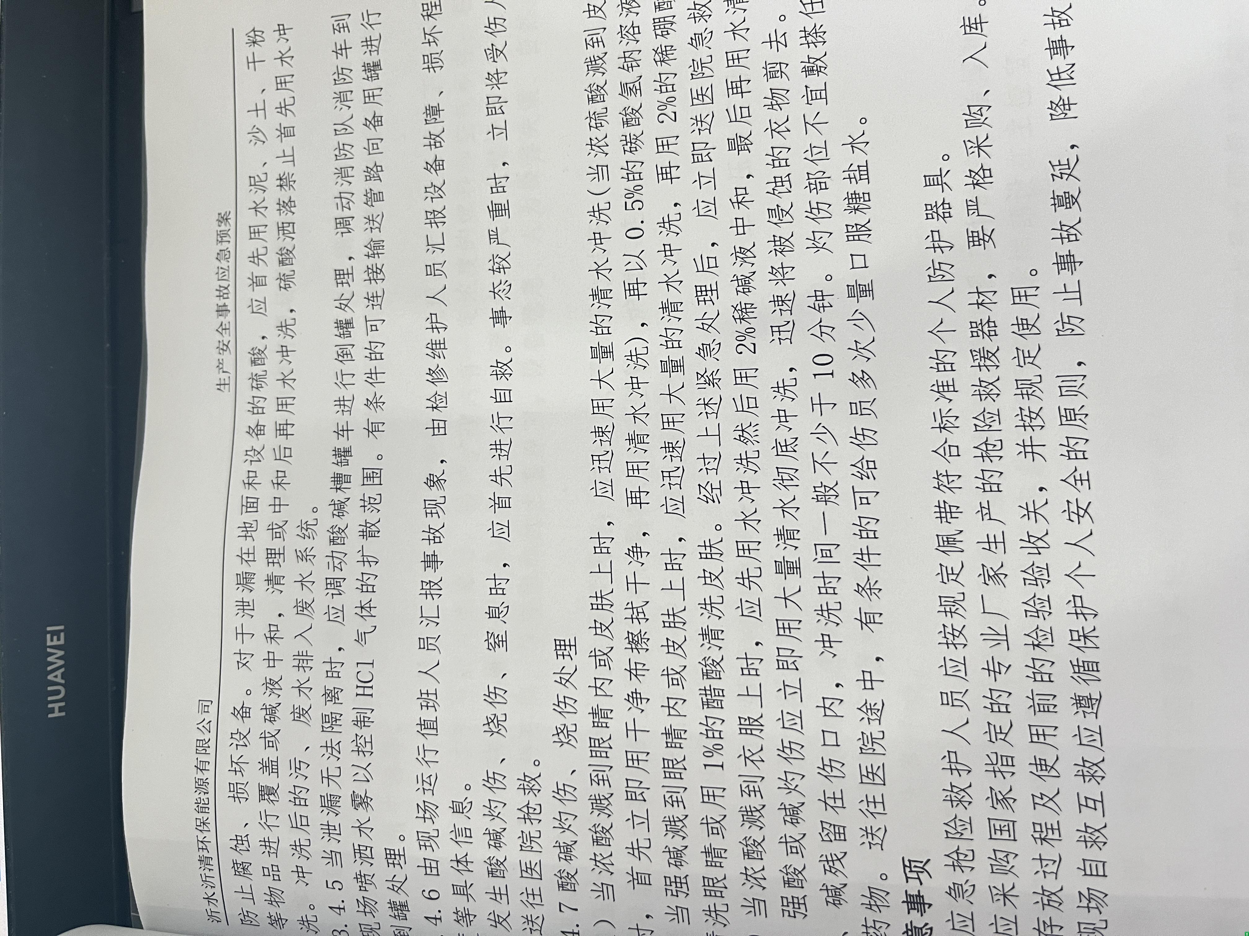 9.应急预案危化品专项应急预案中包含硫酸处置措施,此厂使用酸类为盐酸,与实际不符