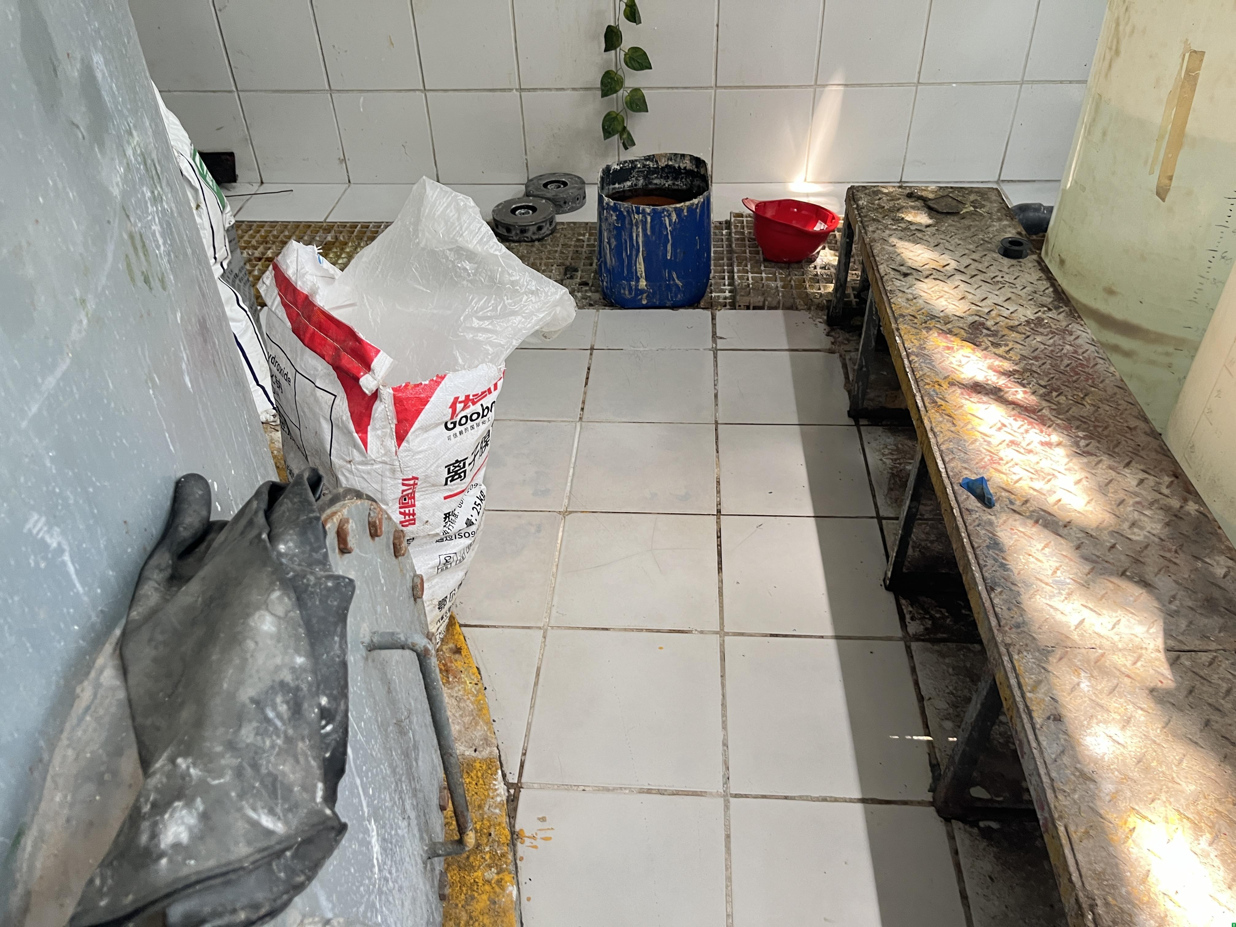 2.化水车间加料区域未配置防护眼镜等防护用品;