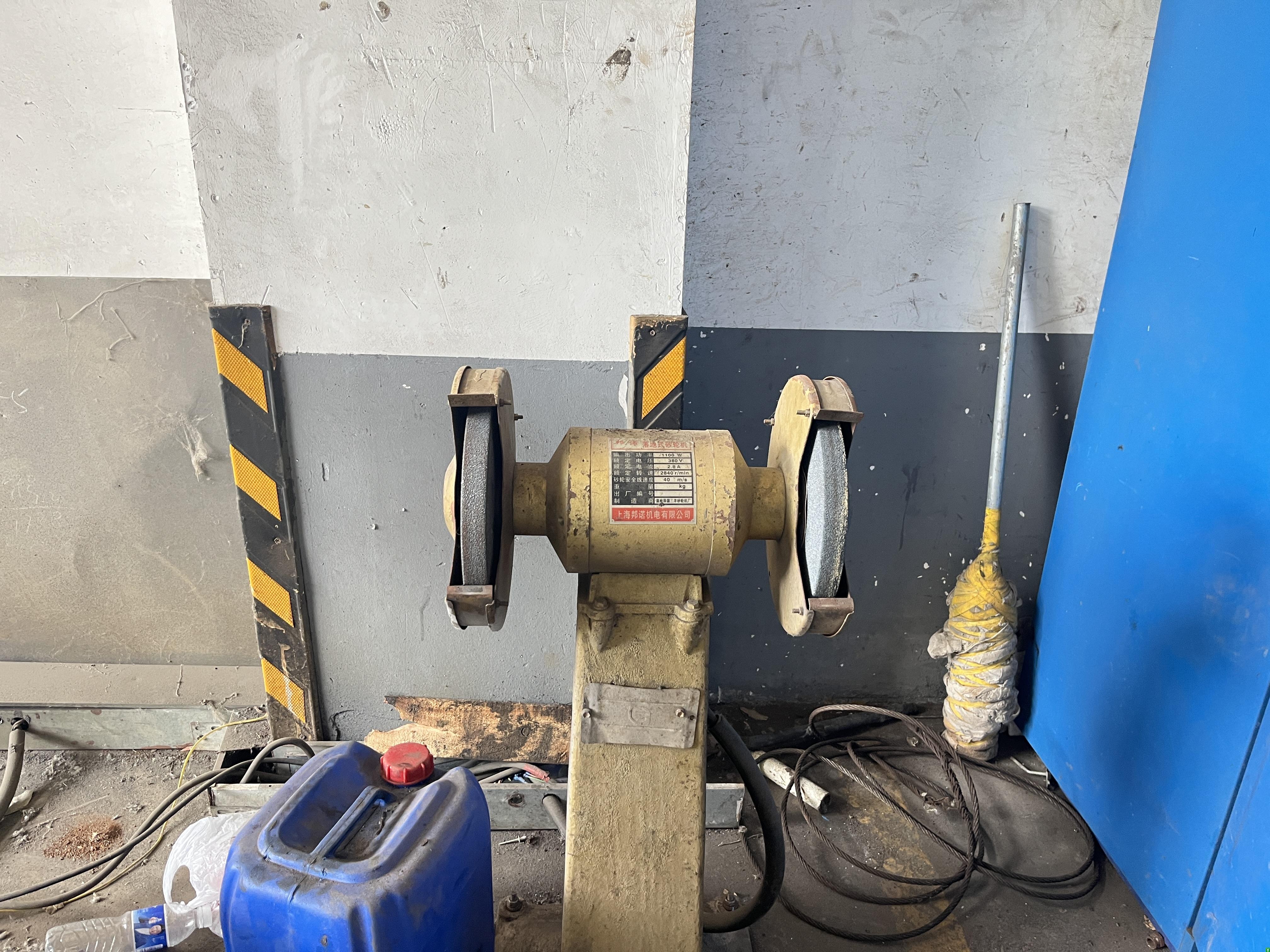 6.维修车间砂轮机附近未张贴当心机械伤人警示标志;