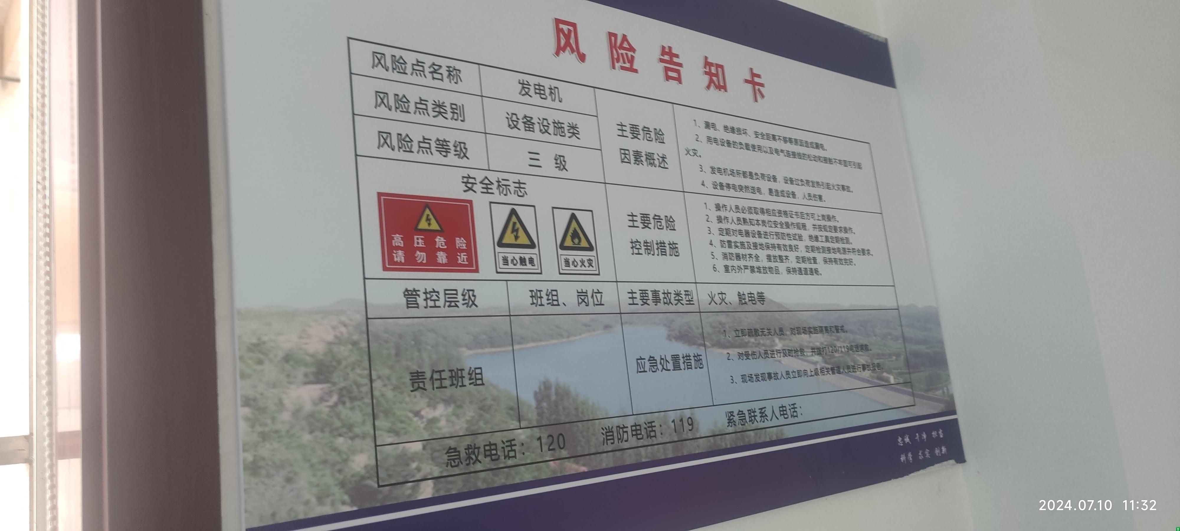 9.柴油发电机房未张贴柴油危险化学品告知卡及应急处置措施。