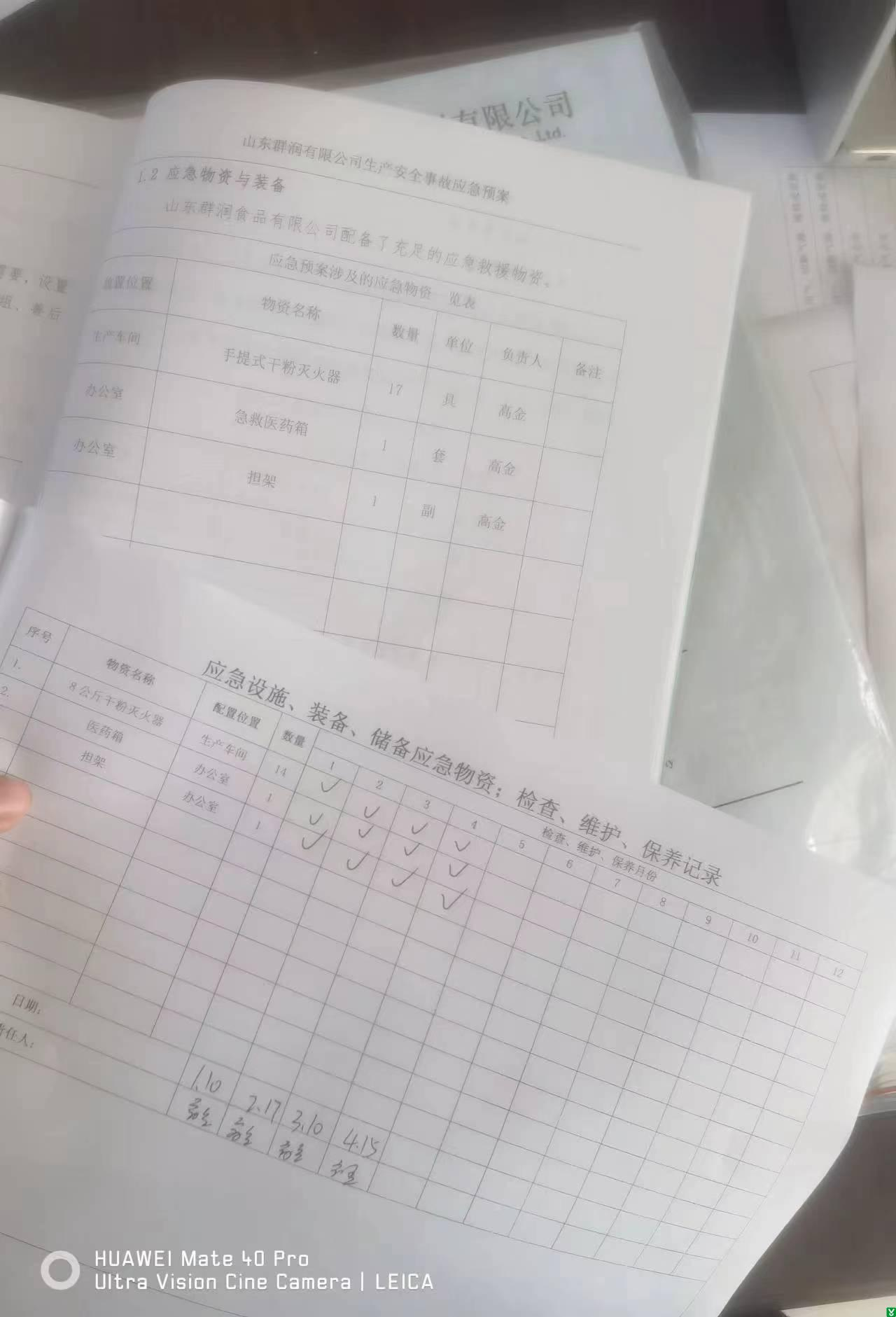 5.检查时企业应急物资维护保养记录灭火器数量14具少于预案中统计的17具