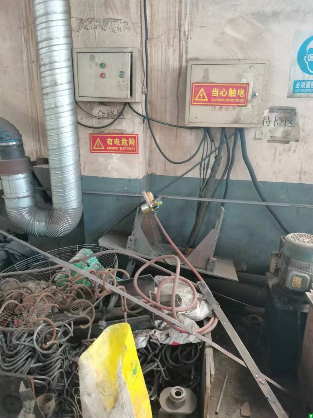 4.电焊车间待检区配电箱前方堆放物品,影响应急操作