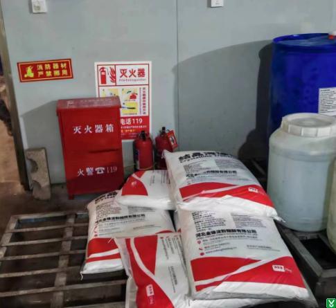 4.车间原料处灭火器被堵塞;