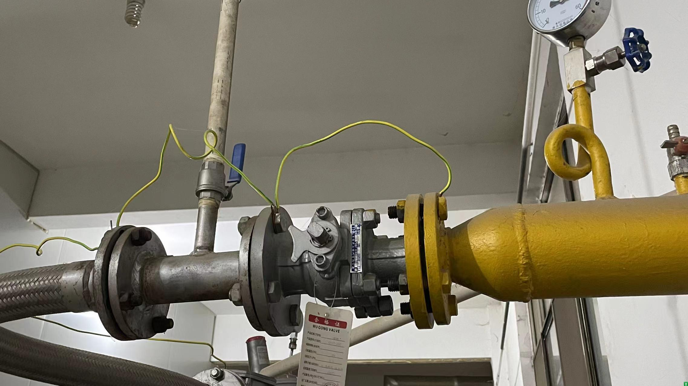 1.烤炉处天然气管道法兰跨接设置不规范,燃气调压站内多处燃气管道法兰未设置跨接线