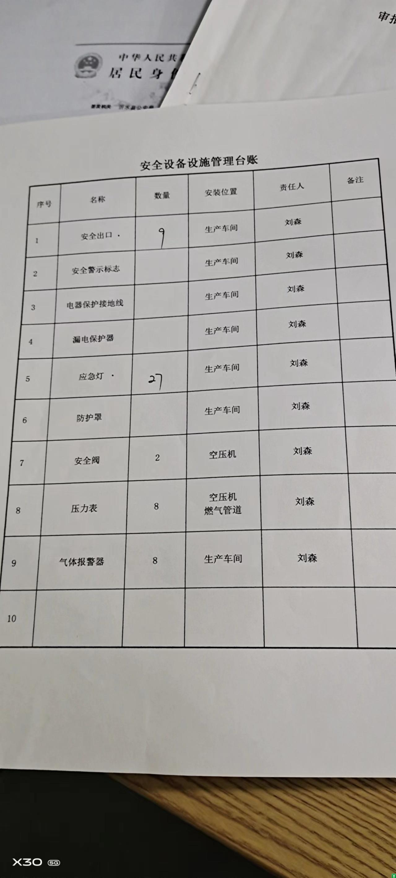 3.安全设备设施台账与实际不符,燃气泄漏报警控制器实际运行显示为10个探测装置,台账上为8个