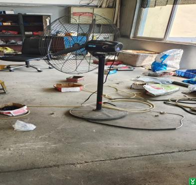 5.生产区工业电扇电源自行延接且落地配设未防护;