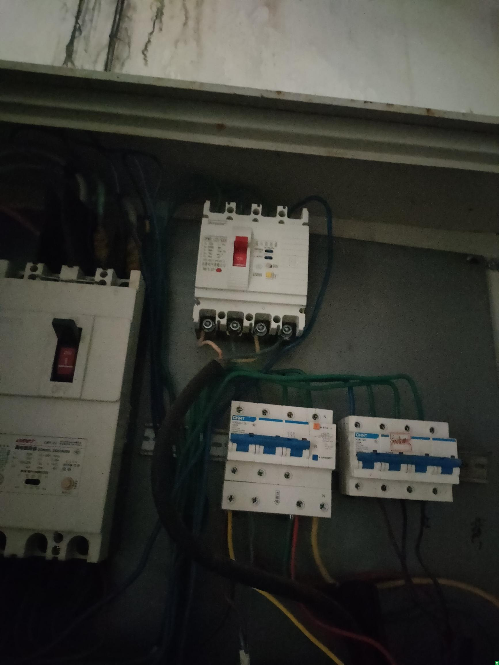 3、外包装车间门口东侧配电箱内断路器开关接线端未设置相间绝缘隔片;