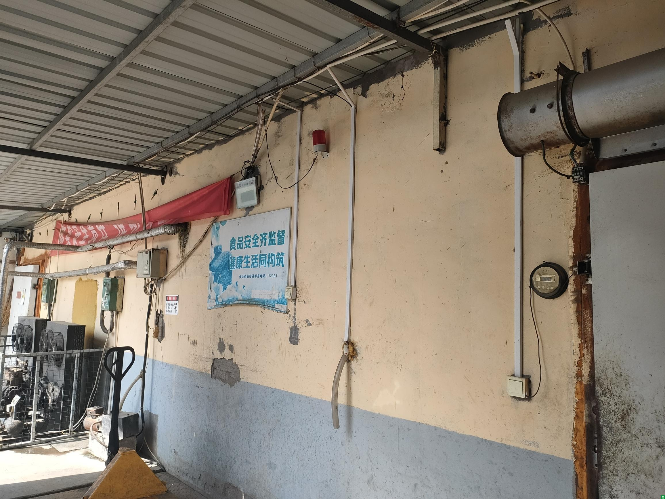 1、原料库门口“当心低温”安全标志老化严重;