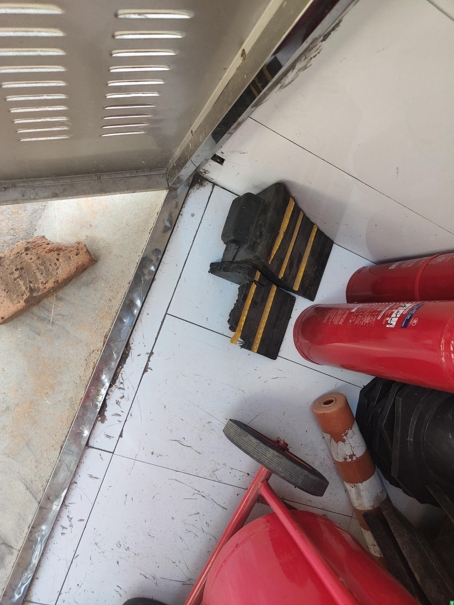 4.油罐区消防器材柜内车挡损坏。