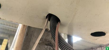 4.空压机西侧立柱上配电箱出线口未设置防割措施