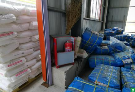 1.成品库南门一处配电盒无盒盖,无“当心触电”警示标志。
