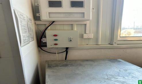 2、发货台东南角配电箱未接地,电线未穿管防护;