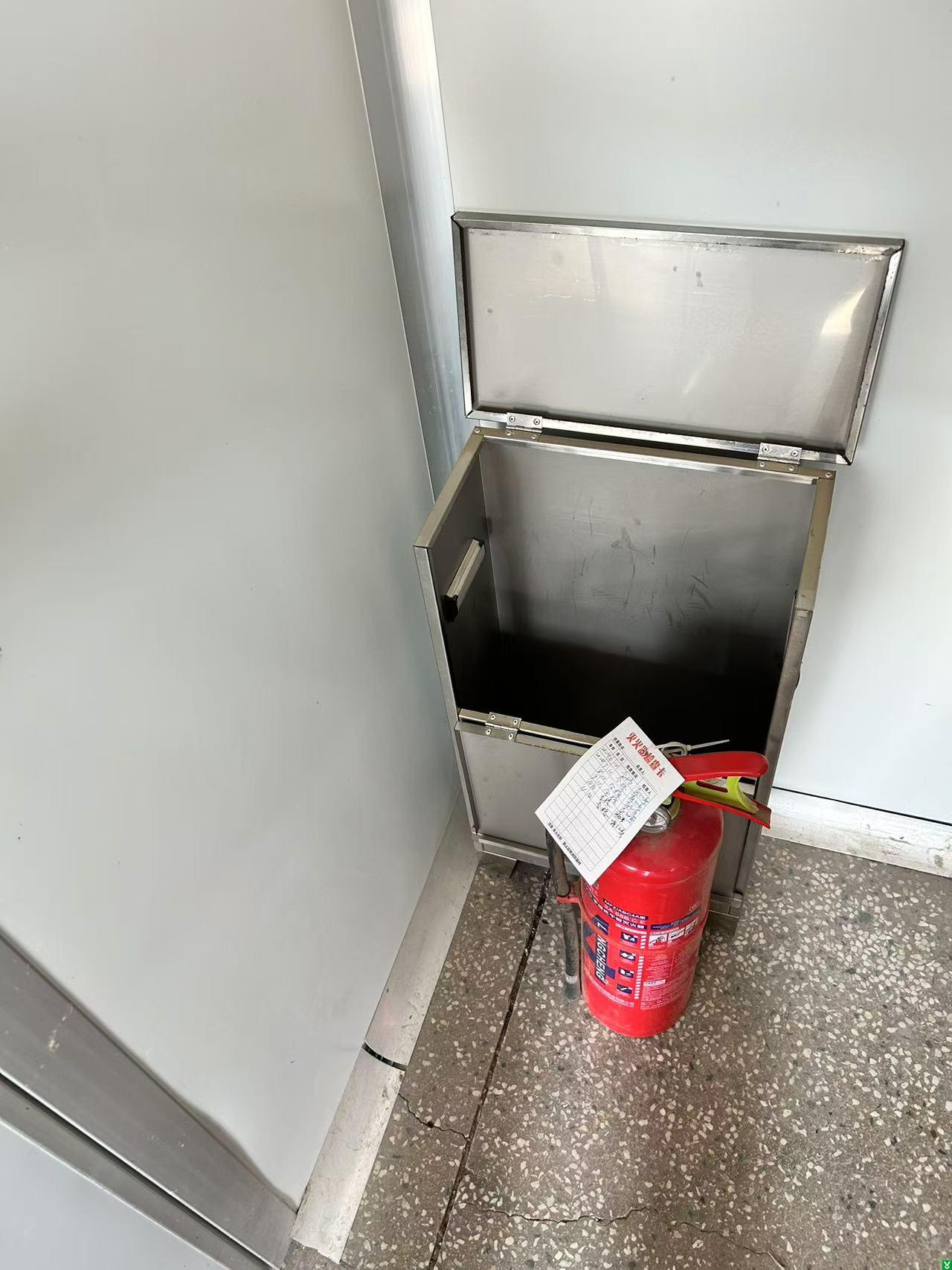 1、发货台西北侧灭火器单具放置;