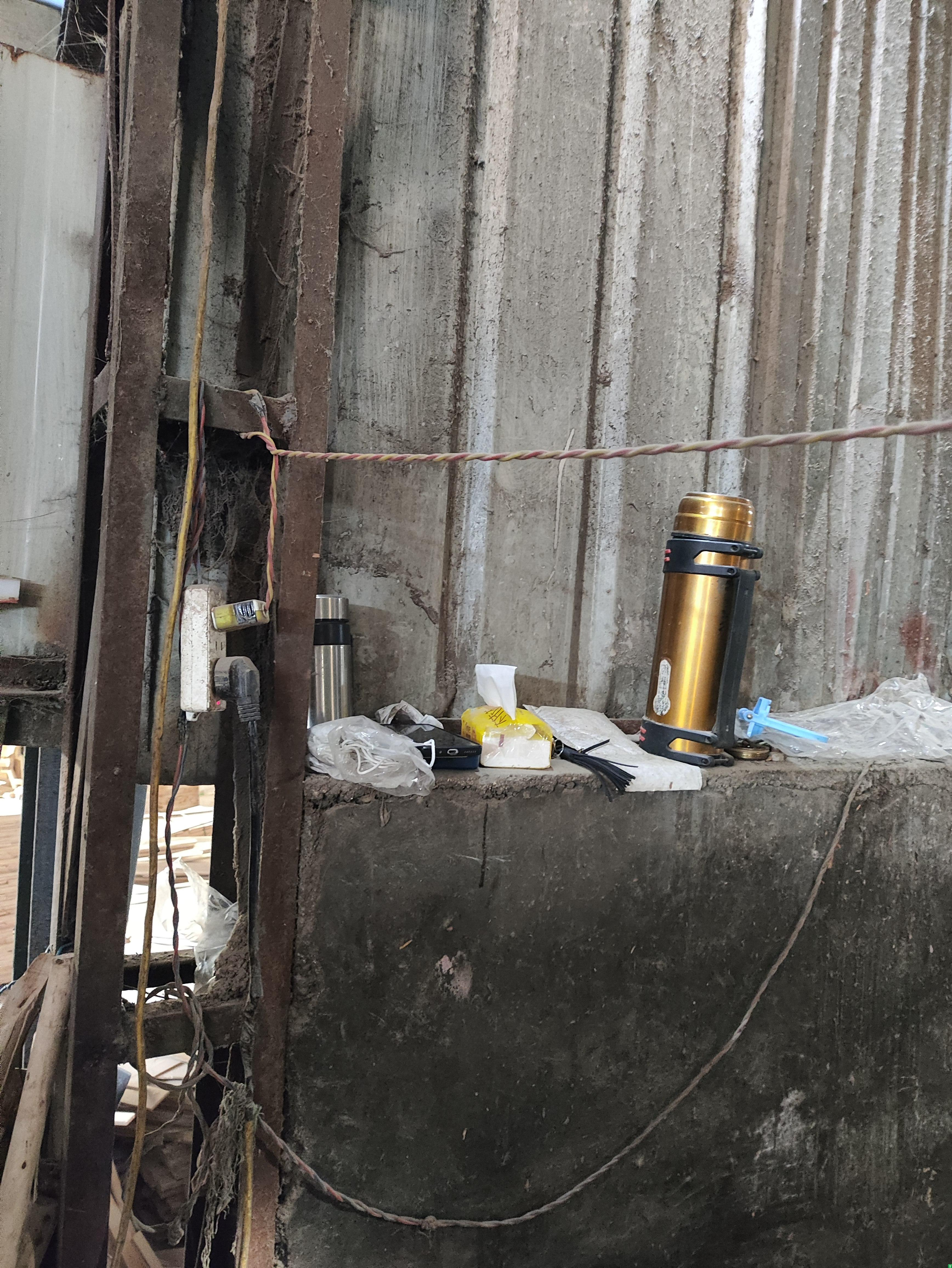 1、铺板车间南侧涂胶机旁边电灯使用花线;