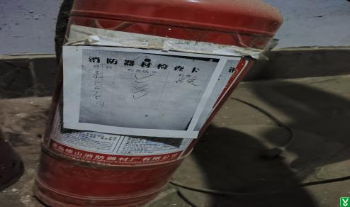 2、铺板车间门口灭火器未定期点检;