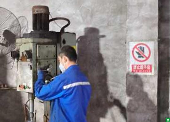 3、机加工车间钻床操作人员佩戴手套操作