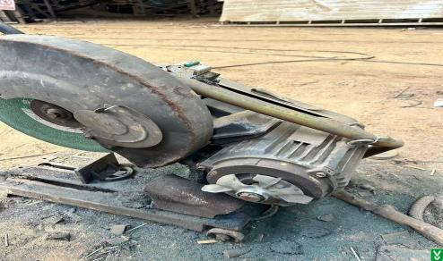 3、检修车间西侧切割机未接地,电机风扇防护罩缺失;