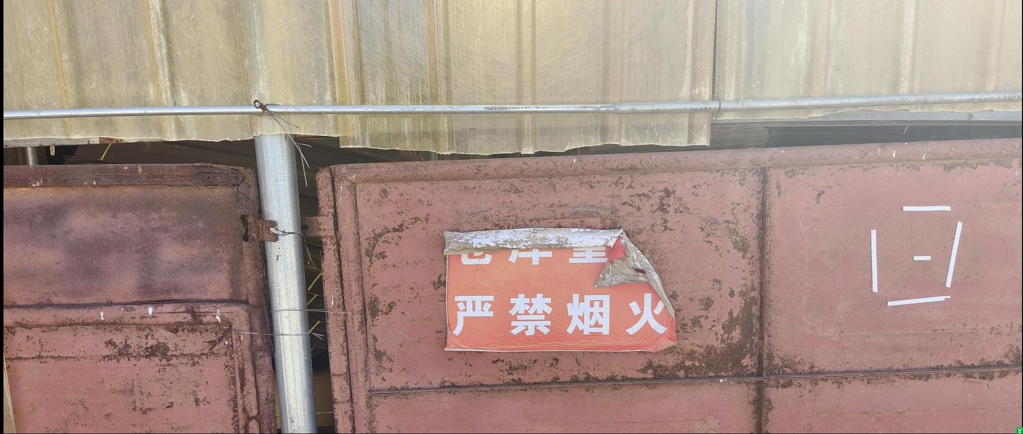 2.东原料库外墙仓库重地严禁烟火警示标志老化破损;