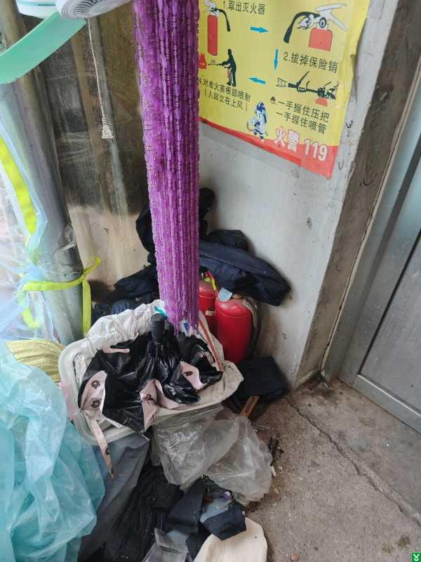 1.车间门口灭火器被易燃物遮挡