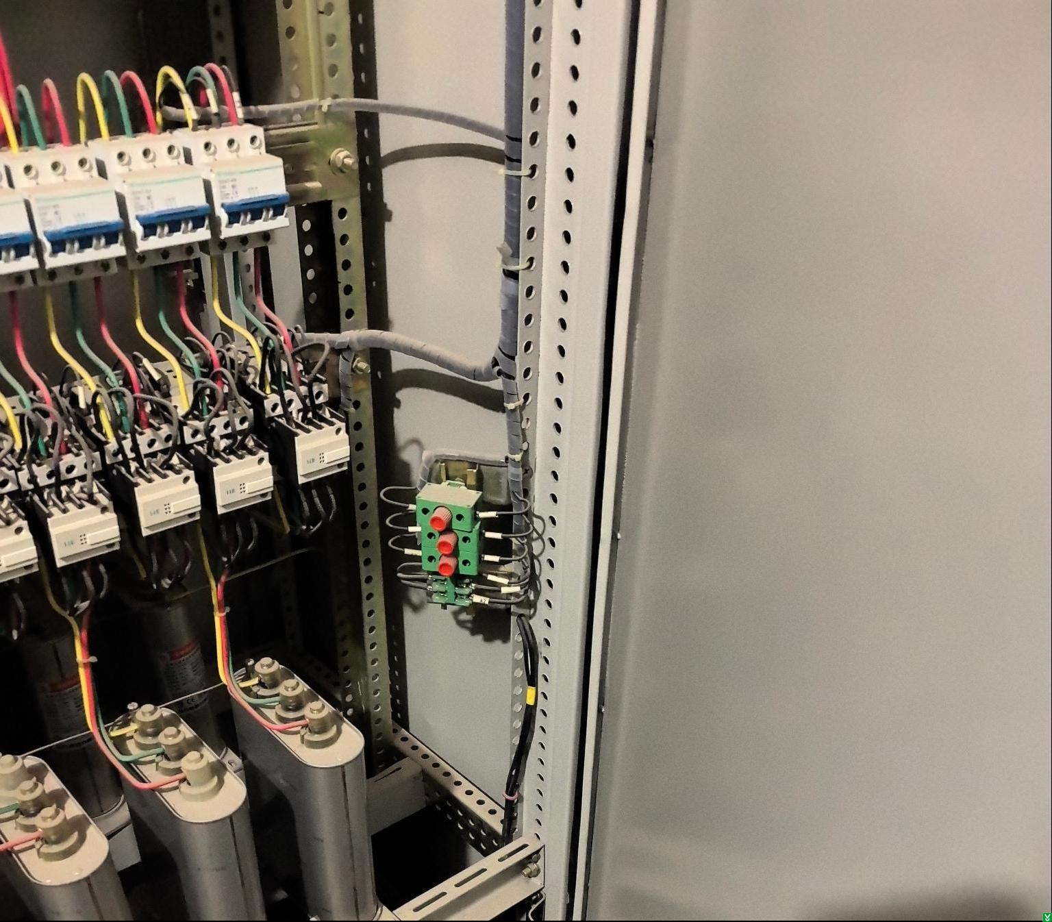 4.二楼喷码机配电箱门未设置跨接线,零线接线处未做绝缘防护。