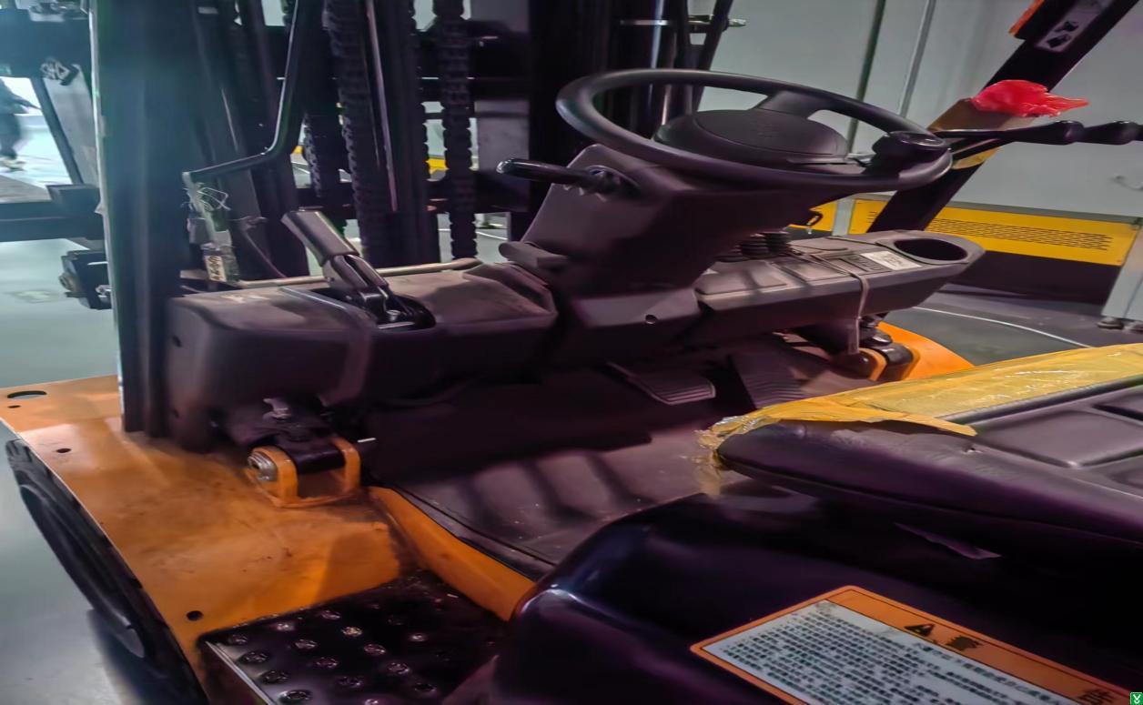 2、生料车间叉车停放未拉紧手刹;