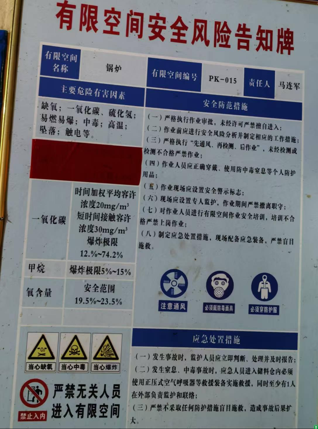 2、锅炉处有限空间告知中危险有害因素辨识错误。