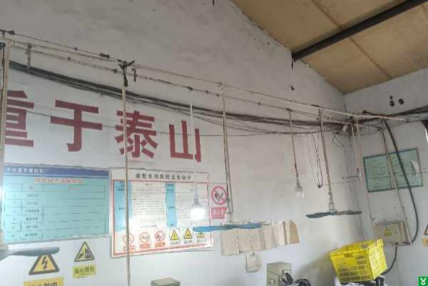 1、成型车间照明灯高度不足2.5m 未设置安全电压。