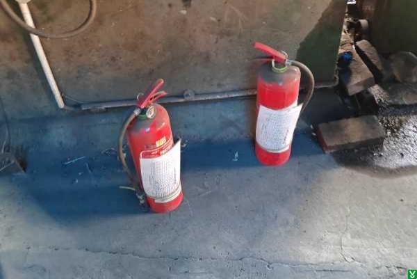 2、车间灭火器放置在地面上。