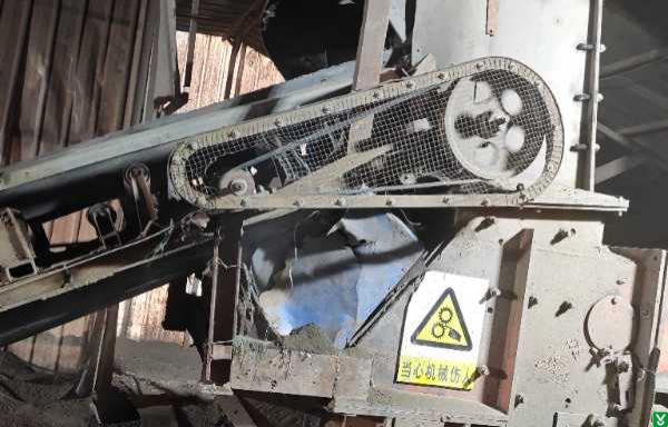 4、粉料机皮带轮防护网损坏。