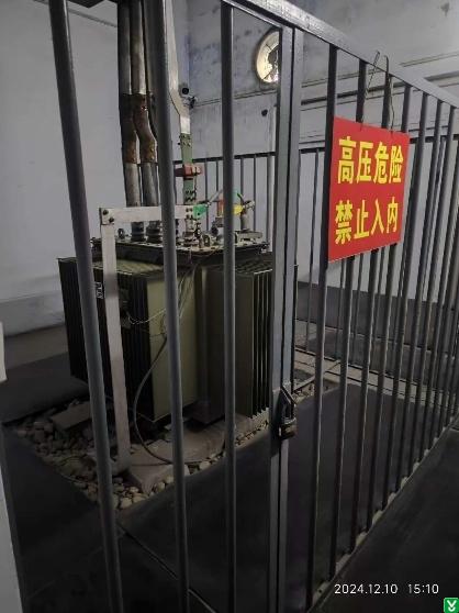 4.隐患:变压器室内安装的防护网孔较大,不符合要求,应在围栏上悬挂“止步,高压危险”警示牌