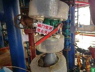2.隐患:5号氯化釜底部放料阀挂有“阀门常开”标识,检查时处于关闭状态