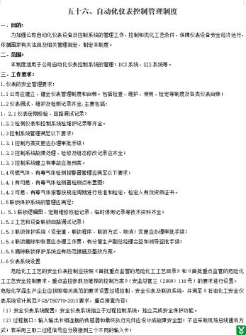 1.隐患:自动化仪表控制管理制度中对于仪表维护保养内容不全,缺少维护保养的具体内容和要求。