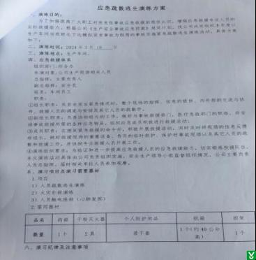2.隐患:抽查2024.3.19疏散逃生应急演练记录,演练前未进行教育培训,缺少培训记录及签到表。