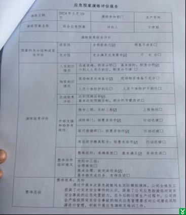 1.隐患:抽查2024.3.19疏散逃生应急演练记录,效果评估中未对应急预案的修订情况进行评估。