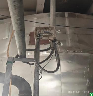 6.隐患:老化罐搅拌电机拆除后电源线未包扎,现场控制箱无柜门,开关未挂牌