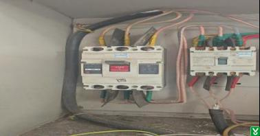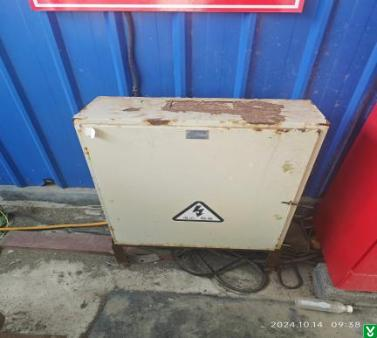 2.隐患:原料仓库西侧配电柜内部电源开关电源进出线未区分相色、配电柜无名称标识