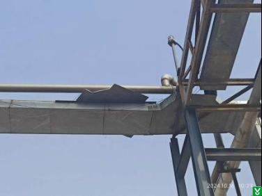 5.隐患:V6005储罐南侧电缆桥架盖板安放在桥架上未进行固定