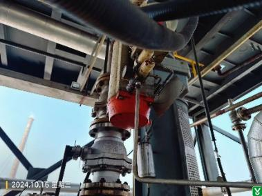 4.隐患:装置二层平台反应釜R1003—R1007个别气动阀无位号名牌;个别悬挂位号牌被遮挡。
