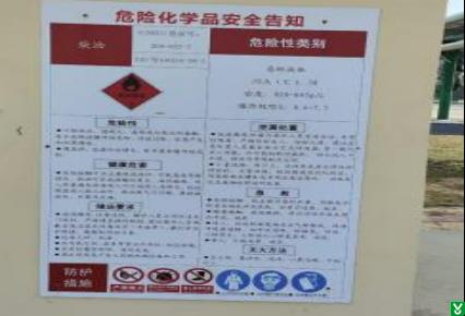 1.隐患:对甲基苯甲酸生产装置一层入口处设置的安全风险告知牌损坏。
