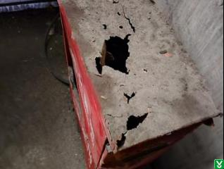 4.隐患:掺混肥车间PLC控制室近处设置的灭火器材箱顶部腐蚀严重、开启不灵活