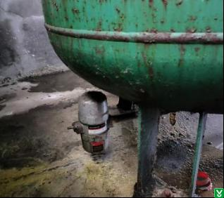 4.隐患:空压机房1.0m3空压气储气罐罐底部自动排污阀排污水就地泄放、未引至安全地点