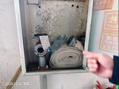 2.隐患:生产车间,一楼墙壁消防栓箱内及箱顶摆放杂物,影响应急使用。